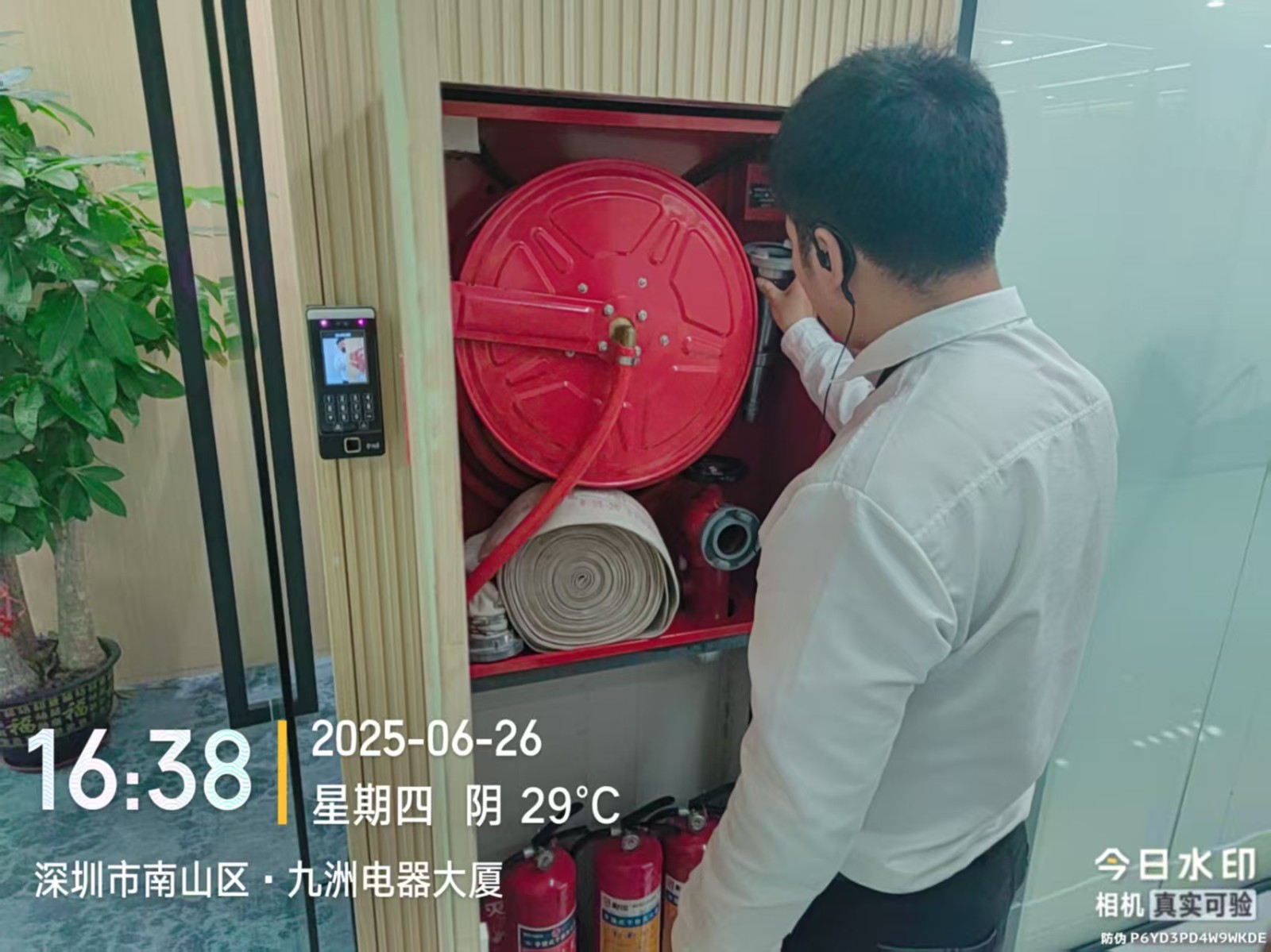 设施维护与隐患治理工作扎实推进,针对九洲电器大厦消防设备设施到期问题,公司通过严格比选重新确定专业消防维保单位,开展全覆盖设备查验,确保消防系统运行可靠;积极响应集团部署,参与安全生产管理人员交叉检查工作,对排查出的隐患实施闭环管理,限时整改到位。