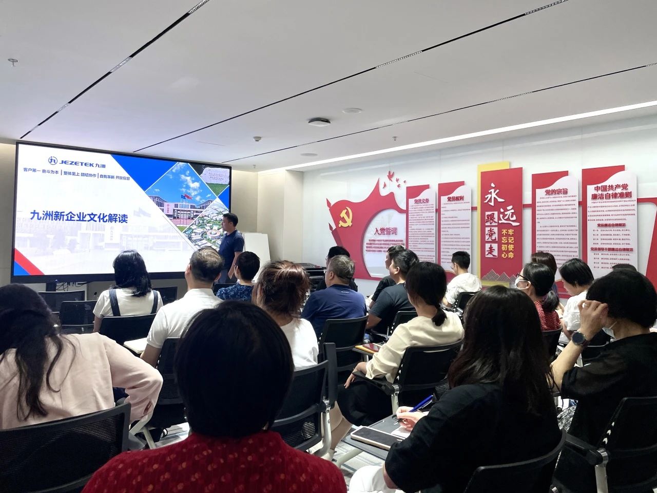 为更好地传递九洲精神,讲好九洲故事,提高员工对企业文化的认同,提升企业管理“软实力”,4月18日,深圳九洲电器组织开展“高管开讲”赋能学习会第四期《九洲新企业文化解读》培训。公司总经理助理、董事会办公室主任刘勇作为本期讲师为公司中层级以上管理干部、关键岗位员工解读九洲企业文化的核心理念以及九洲的发展历程和各发展阶段文化演绎的过程。让大家深刻领悟到,九洲历经66年的发展,孕育出鲜亮的九洲文化底色,九洲的企业文化不仅来源于现实的实践,更来源于历史的沉淀,站在新时代新起点的我们更应该永葆九洲初心、赓续九洲基因、传承九洲文化、弘扬九洲品格,续写九洲高质量发展新篇章!